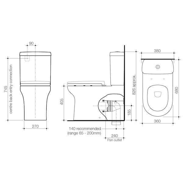 - Back to wall design conceals plumbing fixtures