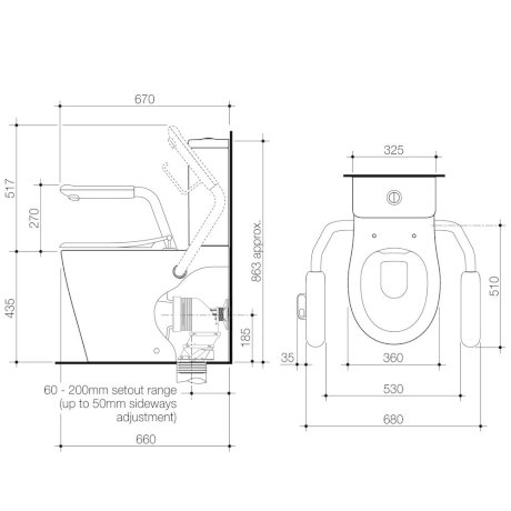 Care 660 Cleanflush® Easy Height WC Suite – Right Nurse Call Armrests, White