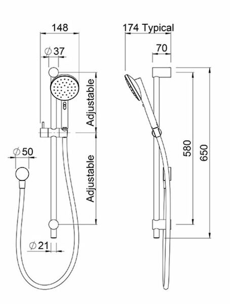 - 1 x adjustable pillar for easy retrofit installation